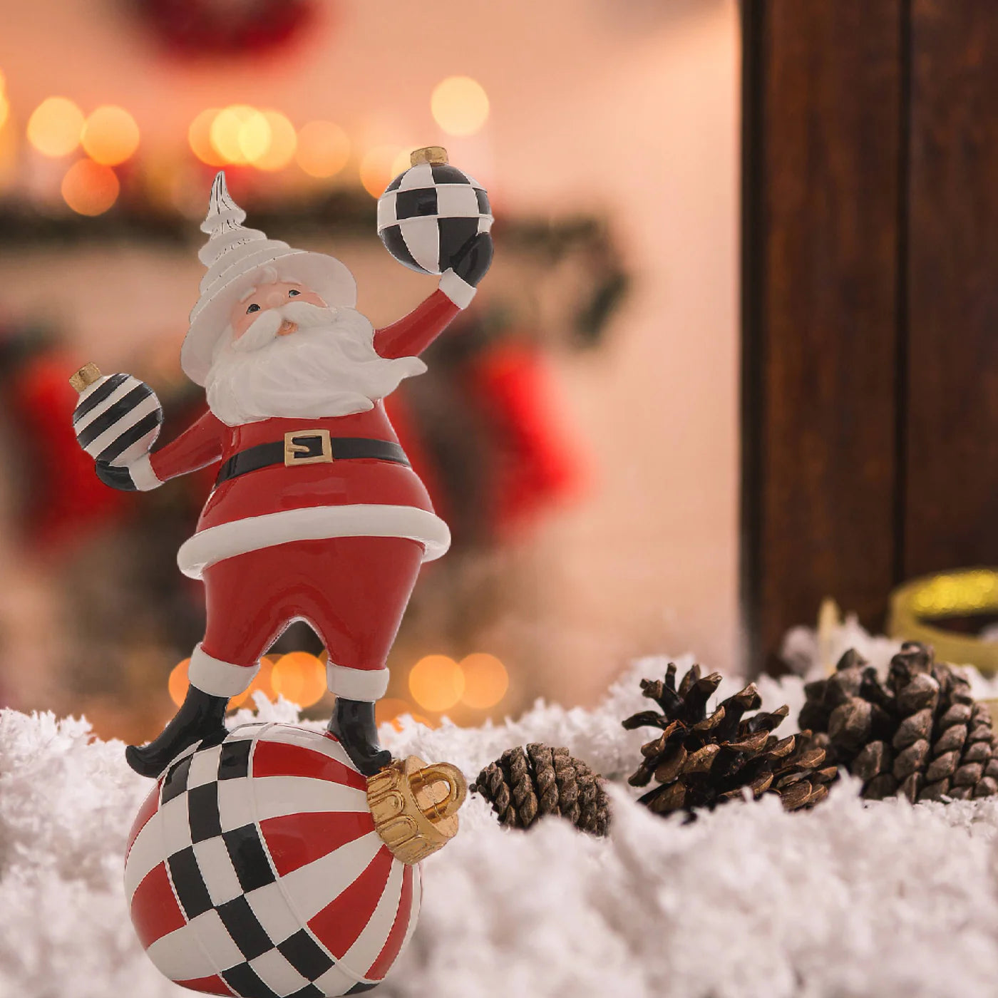 Questo bellissimo Babbo Natale saprà impreziosire la vostra casa nelle festività natalizie. I dettagli sono fantastici. Il Babbo Natale è realizzato in resina, è rappresentato come un giocoliere su una palla natalizia. L'altezza totale è di 43 cm.