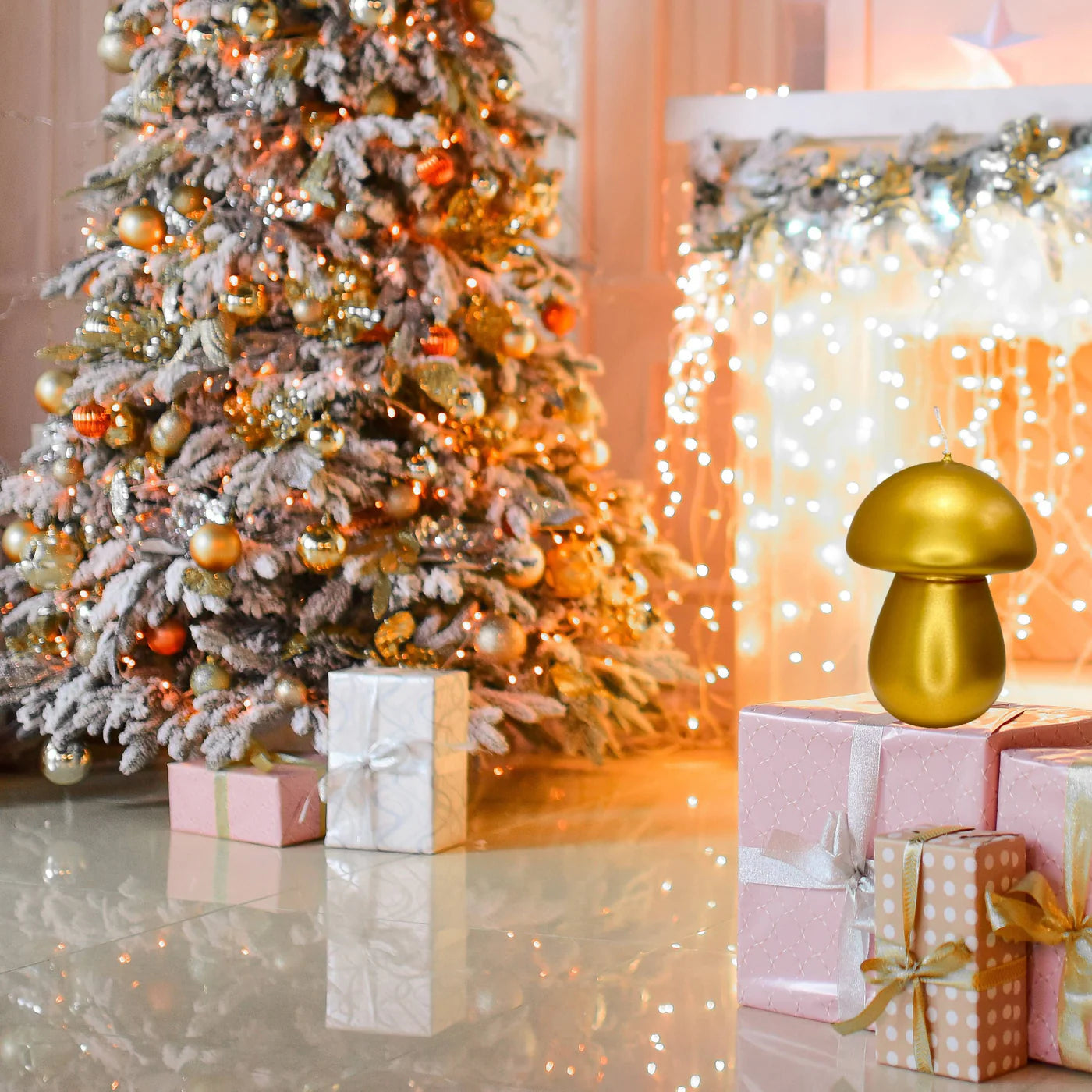 Graziani è una linea di candele particolari adatte in ogni festività. L'articolo fa parte della collezione Fungo. La candela è di colore oro, laccato. Altezza totale è di 13cm.