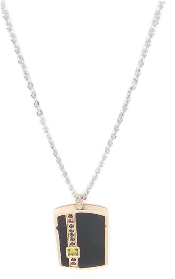 Gioiello da Uomo 4US CESARE PACIOTTI della collezione STEEL realizzato in acciaio inossidabile 316L - La collana, caratterizzata da maglia forzatina lunga fino a 51 cm, possibilità di agganciarla più stretta a cm 45, con targa tipo militare trattata in pvd oro rosè ai bordi e sul retro, al centro è trattato pvd nero con cristalli neri e zircone colorato giallo taglio carrè. - Tutti i gioielli sono privi di nickel e ipoallergenici - Nella spedizione invieremo tutto il necessario per fare una confezione regalo.