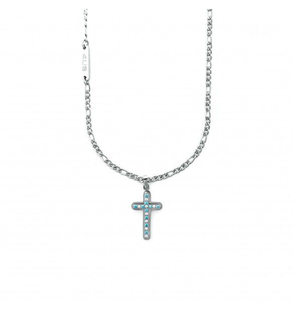 Gioiello da Uomo 4US CESARE PACIOTTI della collezione STEEL realizzato in acciaio inossidabile 316L - La collana, caratterizzata da un catena impreziosita su lato da una piccola targhetta con il logo del brand, è valorizzata da un ciondolo a croce e zirconi bianchi e azzurri. Chiusura con moschettone - Lunghezza regolabile da 60 a 65 cm - Tutti i gioielli sono privi di nickel e ipoallergenici - Nella spedizione invieremo tutto il necessario per fare una confezione regalo.