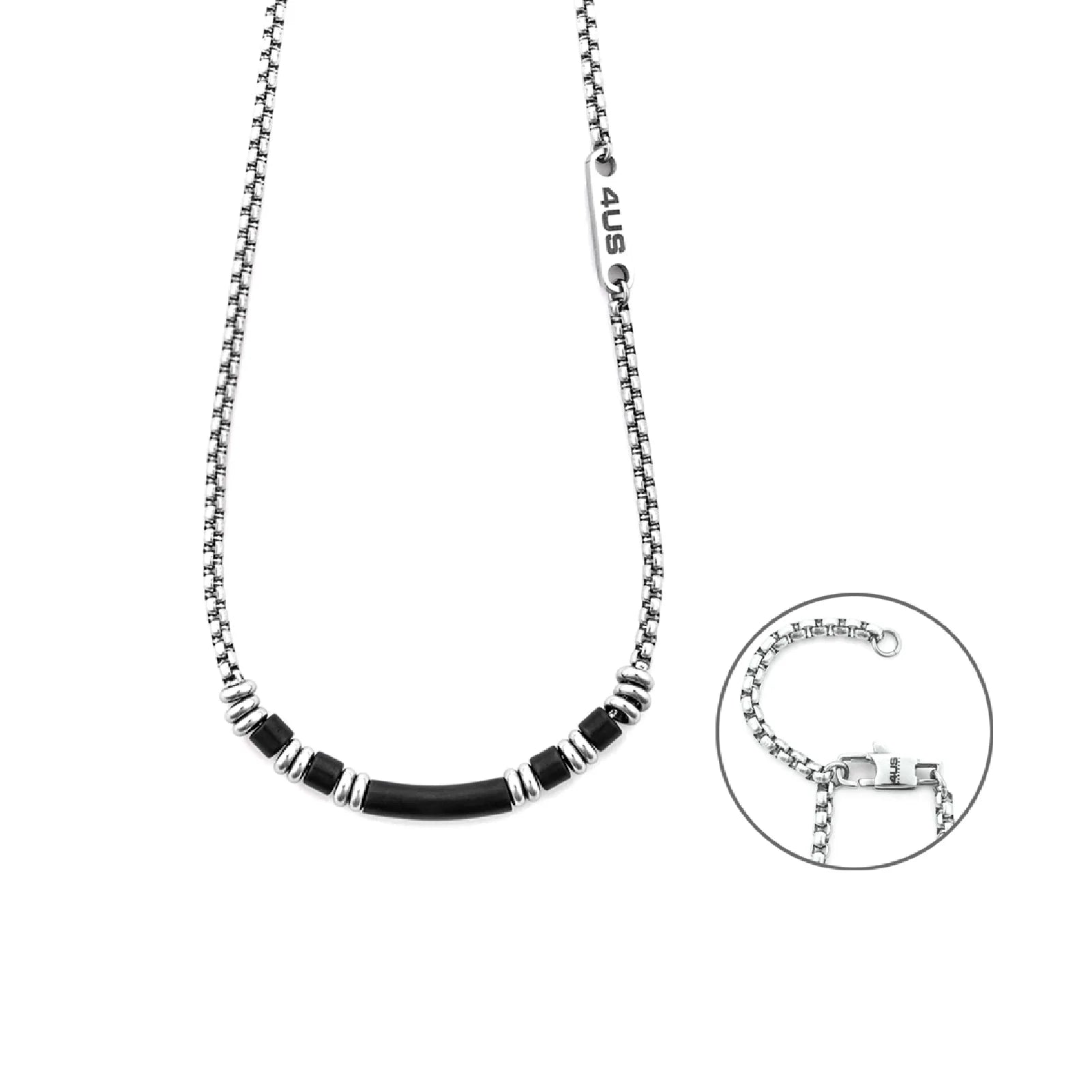 Gioiello da Uomo 4US CESARE PACIOTTI della collezione STEEL realizzato in acciaio inossidabile 316L - Collana girocollo da uomo. Colore: argento e nero. Il gioiello è realizzato in acciaio con trattamento pvd nero sugli elementi cilindrici che compongono il gioiello posizionati al centro. Lunghezza regolabile da 60 cm a 65 cm. Chiusura regolabile con moschettone. Tutti i gioielli sono privi di nickel e ipoallergenici .Nella spedizione invieremo tutto il necessario per fare una confezione regalo.