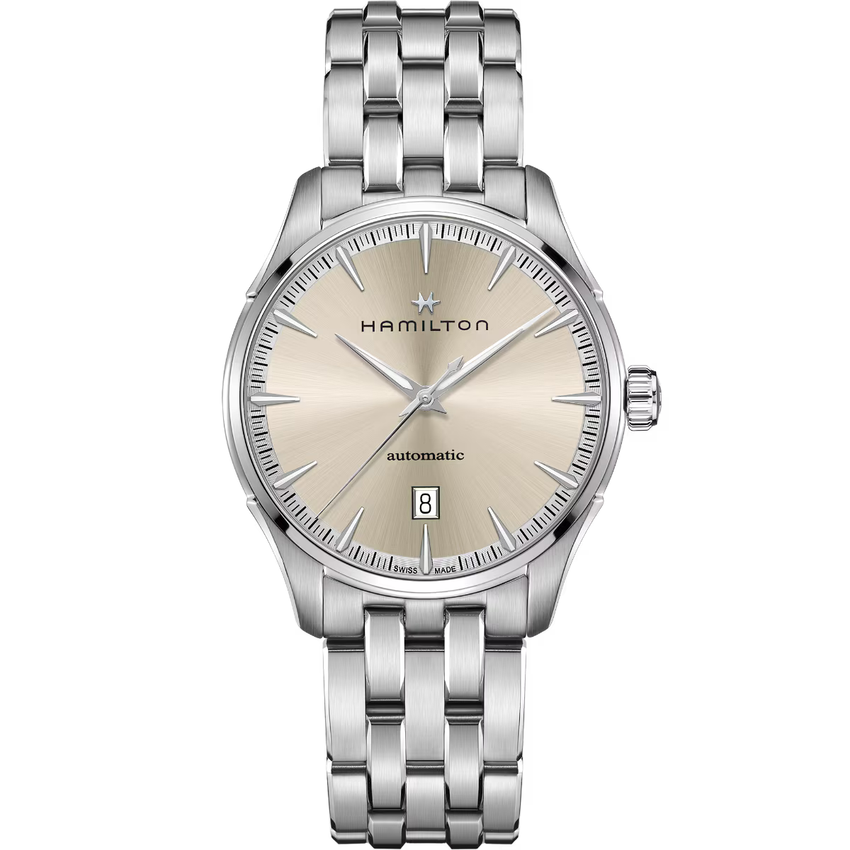 Grazie al design sofisticato, il Jazzmaster Auto è un segnatempo moderno che si adatta a ogni contesto, dagli incontri di lavoro alle uscite serali. Animato da un movimento automatico con spirale in NivachronTM, una nuovissima lega anti-magnetica, questo orologio da 40 mm garantisce una misurazione precisa per una settimana intera.