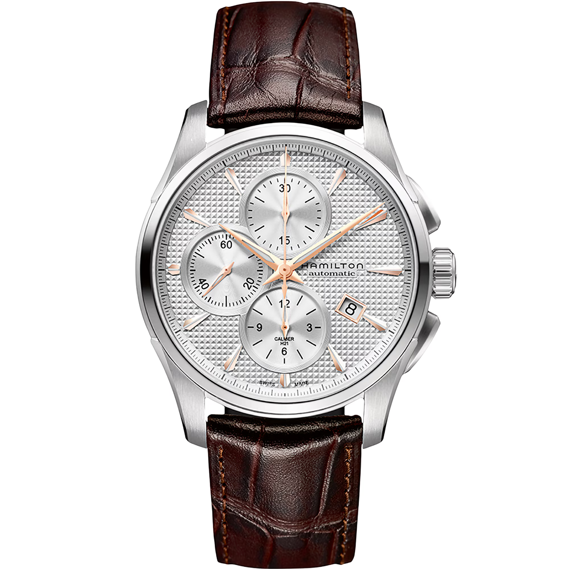 Il Jazzmaster Auto Chrono è un orologio che sta al passo con la vita moderna, battendo al ritmo del suo movimento. Dedicato a chi ama la tradizione ma con un occhio all'innovazione, l'H-21, con le sue 60 ore di riserva di carica, è ospitato in una cassa dalle curve morbide e dalle linee pulite.