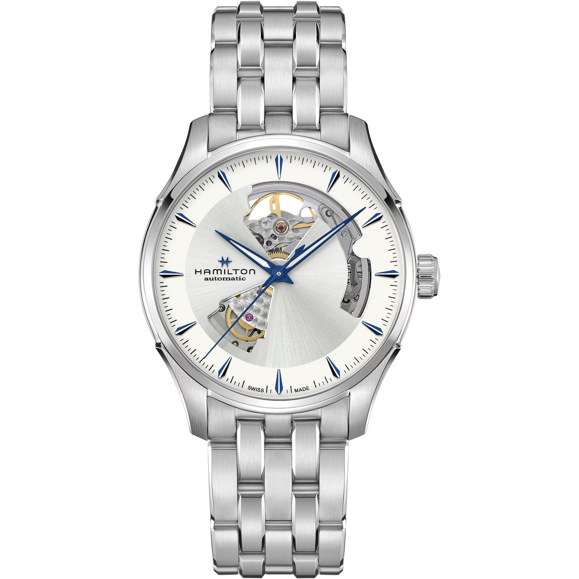 L'orologeria classica incontra il design contemporaneo in questo Jazzmaster Open Heart Automatic blu e argento. Le precise traforature del quadrante da 40 mm permettono di ammirare il movimento interno prodotto in Svizzera e donano a questo segnatempo sofisticato grande personalità.