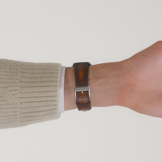 Il Jazzmaster Open Heart 40 mm, con il suo quadrante traforato bordeaux scuro, punta tutto sulla precisione e rivela al contempo la raffinata bellezza del movimento meccanico al suo interno. Mettendo in risalto il movimento automatico H-10, con una riserva di carica di 80 ore e spirale in Nivachron™, il Jazzmaster Open Heart vanta un cinturino in pelle marrone fumé abbinato, che incarna il savoir-faire in continua evoluzione di Hamilton e l'attenzione ai dettagli.