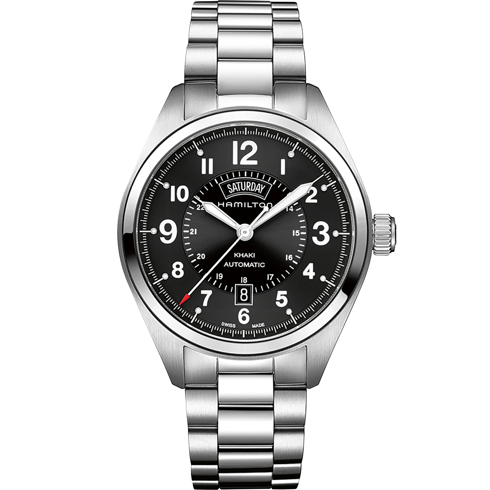 Il Khaki Field Day Date Auto è alimentato dal movimento di precisione H-30. Con le sue 80 ore di riserva di carica, ti offre il massimo dell'autonomia quando sei sul campo.
