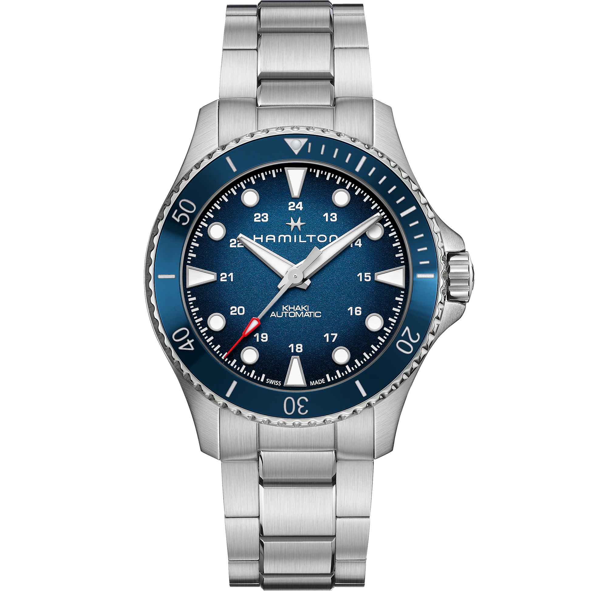 L’eleganza incontra la sportività in questo segnatempo di ispirazione acquatica, perfetto per rilassarsi al mare o esplorare le profondità oceaniche. La lunetta in ceramica con numeri incisi rende il Khaki Navy Scuba Automatic l’orologio perfetto per gli esploratori marini, proteggendolo da elementi corrosivi come sabbia e sale. Grazie alla cassa 43 mm, impermeabilità fino a 30 bar (300 m) e quadrante facilmente leggibile, questo orologio ad elevate prestazioni saprà accompagnarti in tutte le tue avventure, sull’acqua o sotto la superficie.