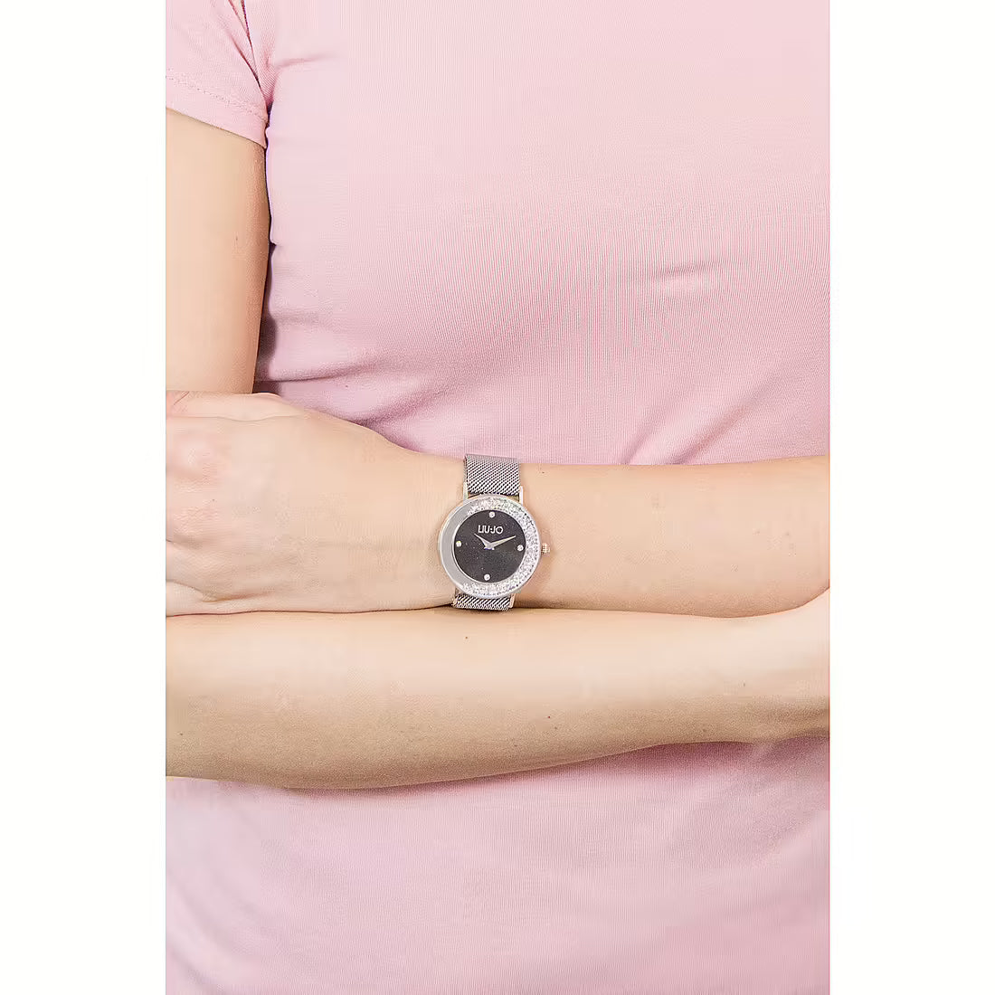 Orologio da Donna Liu Jo Solo Tempo della Collezione Dancing Slim con cassa in acciaio del diametro di 36MM e quadrante di colore nero con cassa con cristalli che si muovono al movimento del polso, cinturino in acciaio mod. maglia milano con chiusura a calamita. La resistenza all'acqua è di 3 atm.