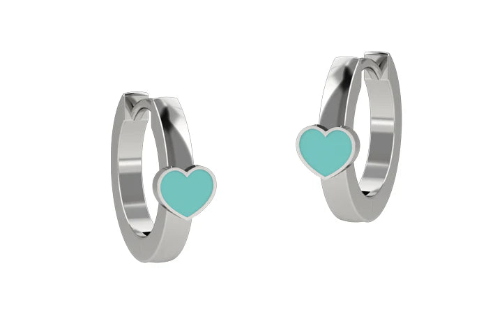 Coppia di orecchini a cerchio con un dolce cuore smaltato in turchese
