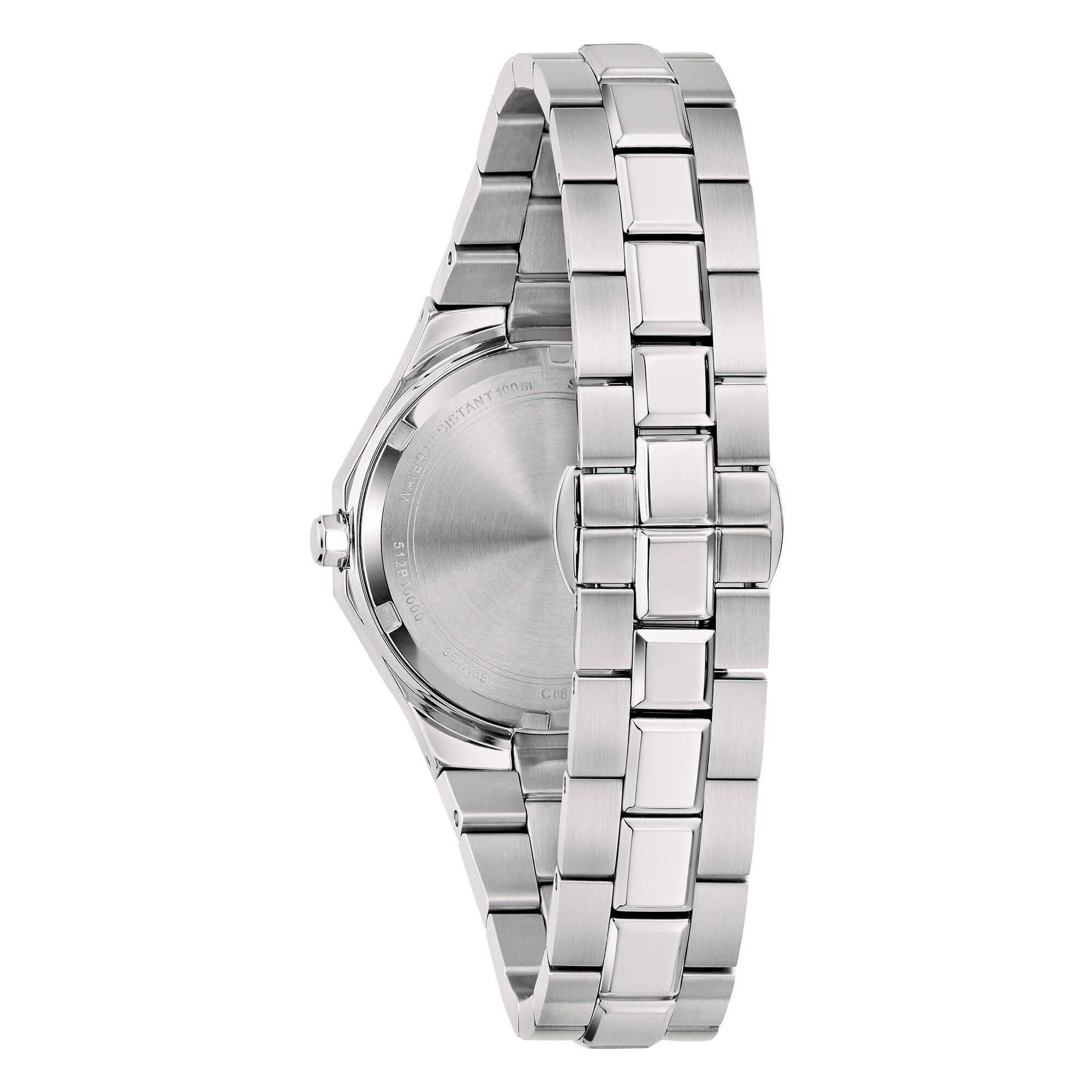 Orologio solo tempo della collezione Bulova Octagon Lady da donna. Colore cassa: argento; colore del quadrante: azzurro; colore del bracciale: argento. Cassa di diametro 32 mm in acciaio inossidabile 316L con datario sul quadrante. Vetro zaffiro. Bracciale in acciaio inossidabile 316L con chiusura deployante. Movimento al quarzo. Classificazione di impermeabilità (WR) 10 atm: datto al nuoto, allo yachting, allo snorkeling e alla nautica.