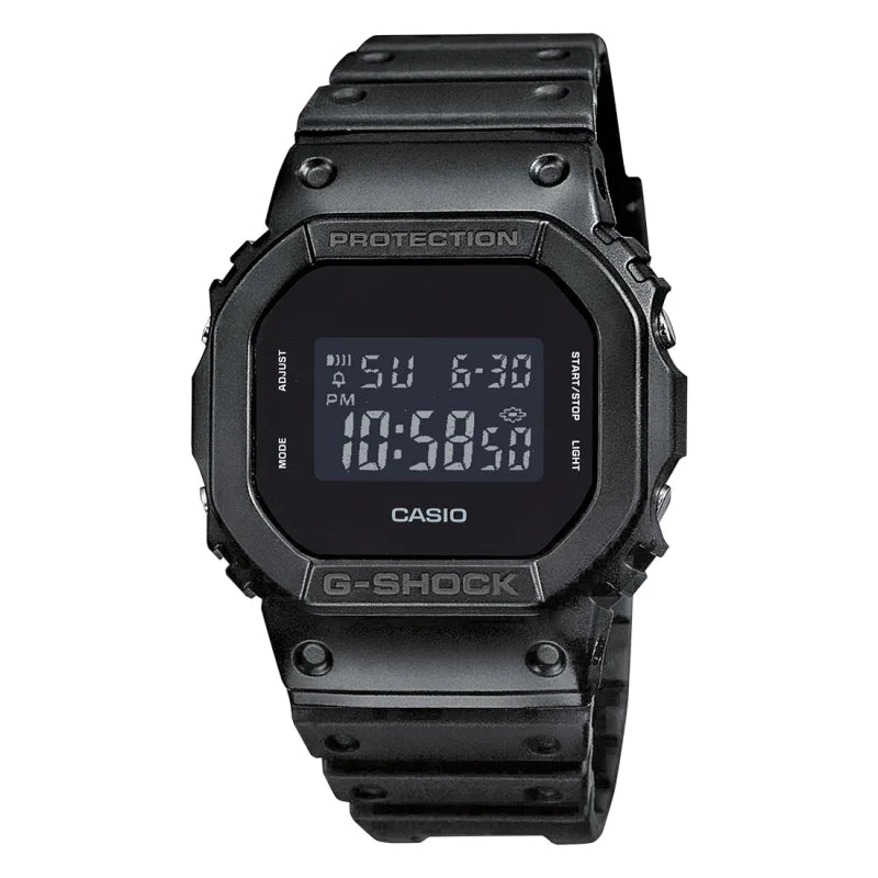 Orologio da uomo Casio G-Shock della collezione The Origin. Il movimento dell'orologio è al quarzo. La cassa dell'orologio è realizzata in resina di colore nero, dimensioni 48,9mm x 42,8mm x 13,4mm. Il cinturino dell'orologio è realizzato in resina di colore nero che fornisce estrema resistenza e flessibilità con chiusura a fibbia. Il quadrante è di colore nero display con pannello elettroluminescente che permette l'accensione del quadrante per una migliore lettura mentre il pulsante viene premuto. La resistenza all'acqua è di 20 bar / 200 metri. Referenza: DW-5600BB-1ER
