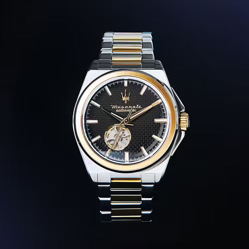 Genere: Uomo, Materiale e finitura cassa: Acciaio, Misura cassa: 41.00mm, Spessore cassa: 12.70mm, Finitura cassa: Lucido, satinato, Colore cassa: Silver, Vetro: Vetro minerale, Materiale cinturino: Acciaio, Colore cinturino: Oro, Silver, Chiusura: Fibbia deployante con pulsanti, Water resistant: 10 atm, Garanzia: Ufficiale 2 anni Maserati, Confezione: Originale Maserati
