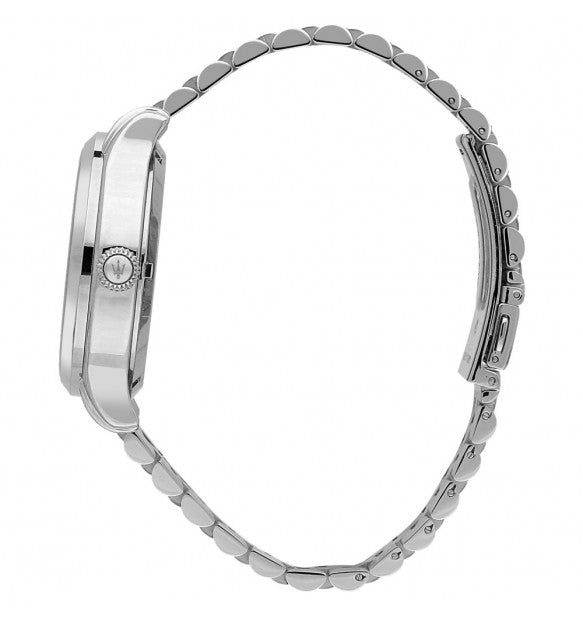 Cinturino in acciaio anallergico; chiusura deployante con pulsanti.
