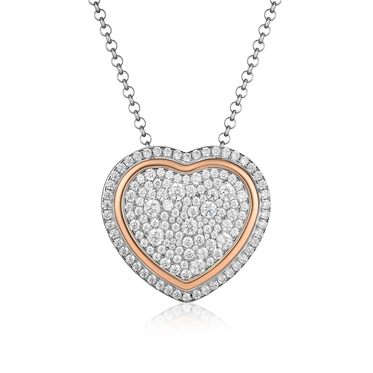 Questo gioiello esclusivo è un simbolo tangibile di affetto e connessione. I tre cuori in argento bianco e rosato, adornati da preziosi zirconi scintillanti, rappresentano le varie forme di amore che arricchiscono le nostre vite: